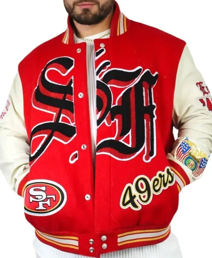 49ers Red and Off White Varsity Jacket