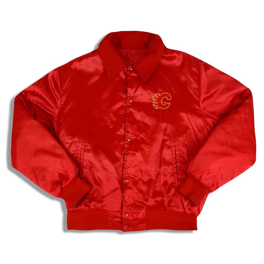 Buy Now Calgary Flames 1990s Red Satin Varsity Jacket For Unisex