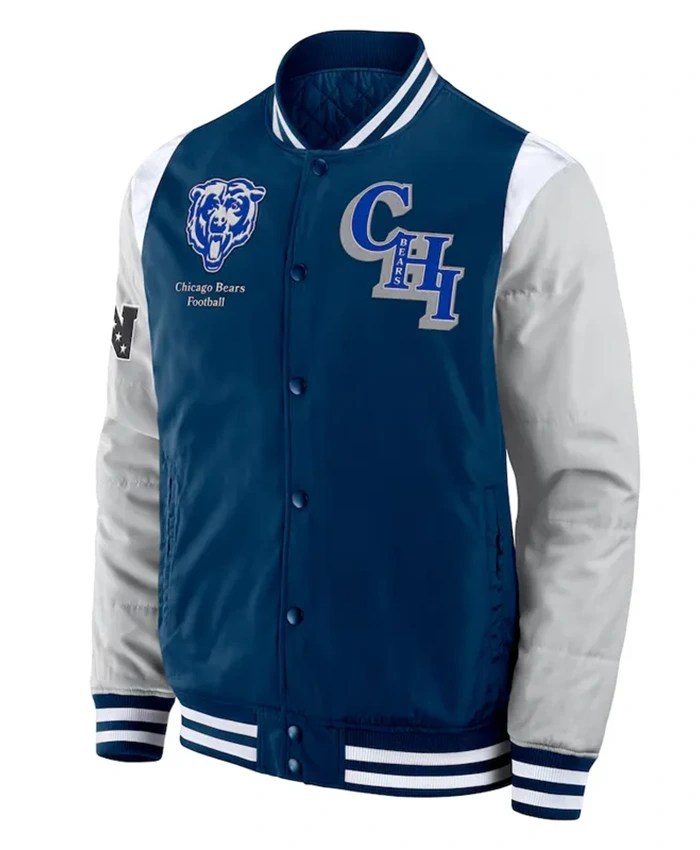 Chicago Bears Elements Elite Blue And Grey Varsity Jacket