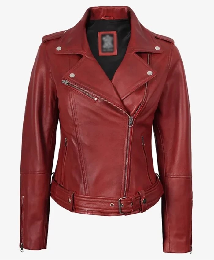 Fashion Margaret Red Leather Biker Stylish Jacket