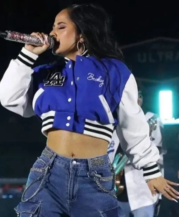 Buy Now LA Becky G Cropped Varsity Jacket For Unisex