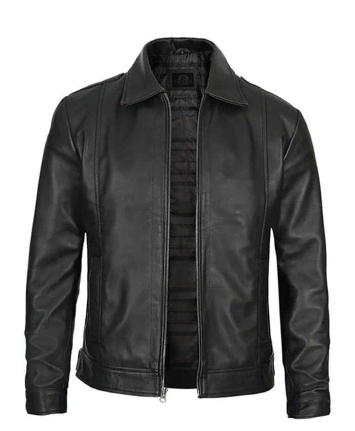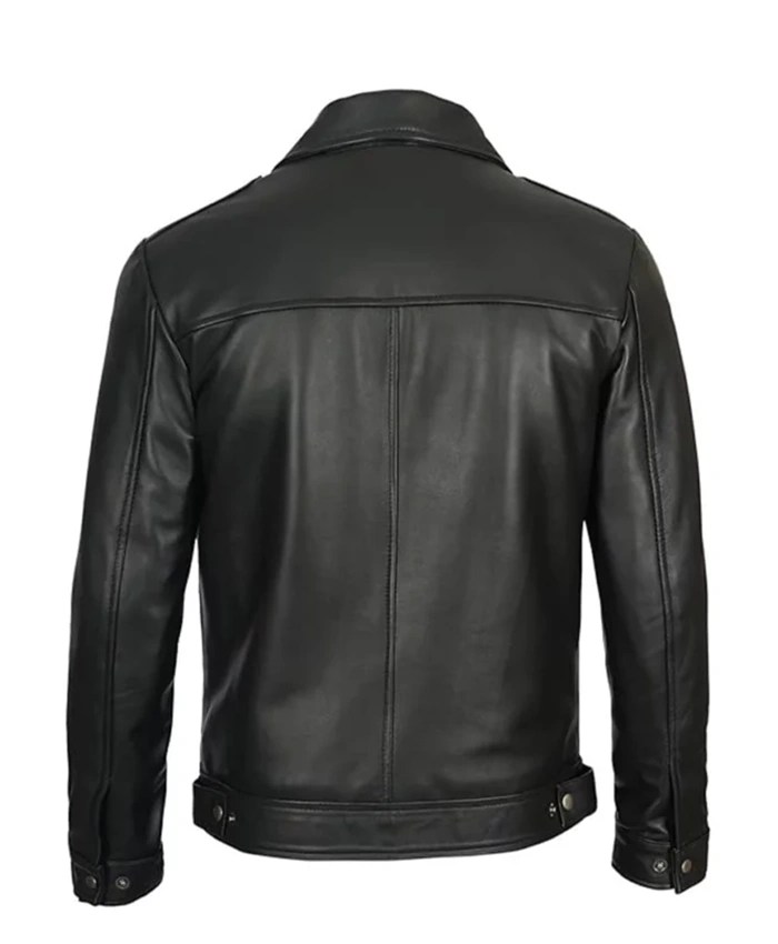 Men Simple Cafe Racer Black Leather Stylish Jacket