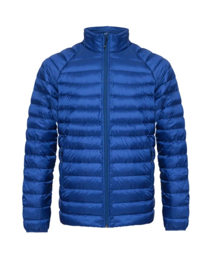 Mens Blue Quilted Bomber Zip-Up Jacket