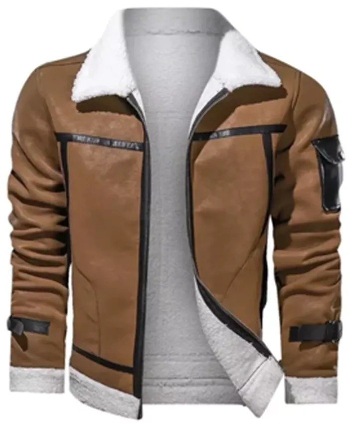 Buy Now Men’s Brown Shearling Stylish Leather Jacket For Unisex.