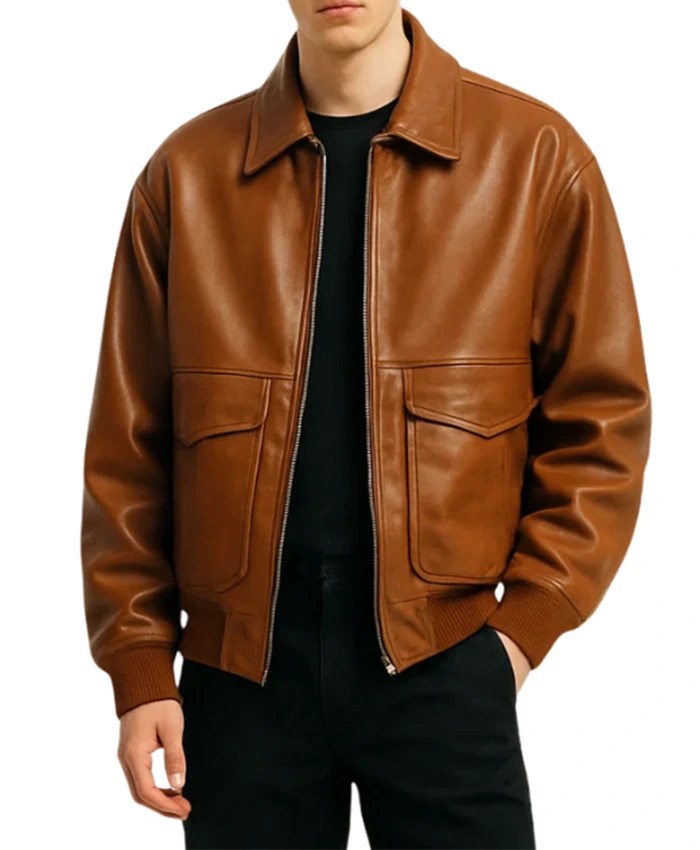 Be the first to review “Mens Oversized Brown Leather Bomber Stylish Jacket”