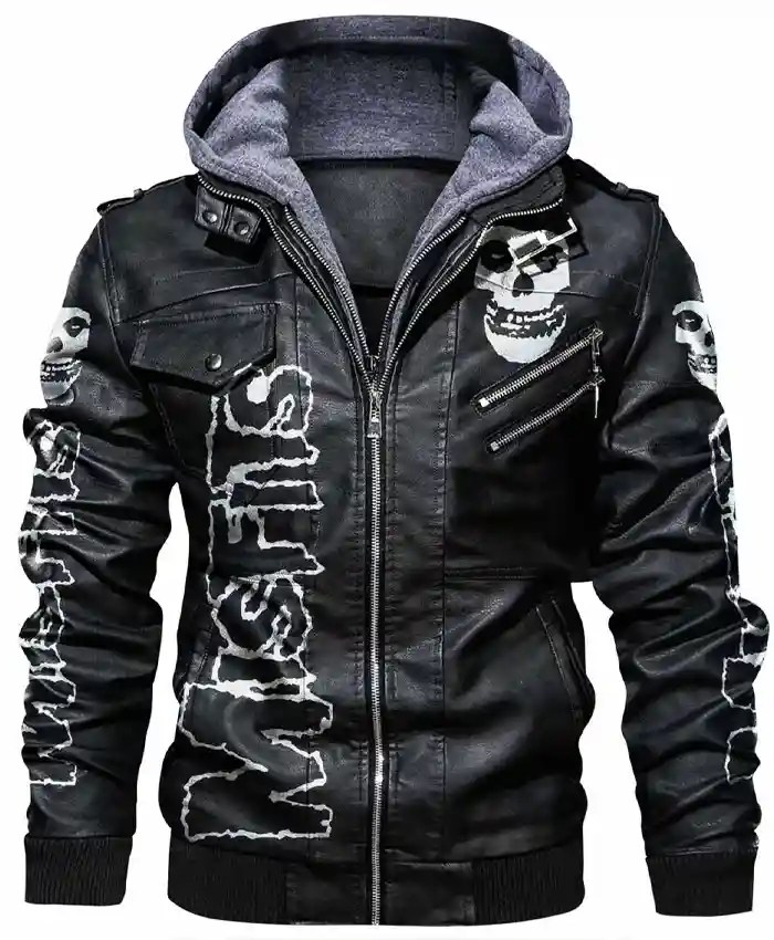 Buy Now Men’s Skull Printed Misfits Stylish Hooded Leather Varsity Jacket For Unisex