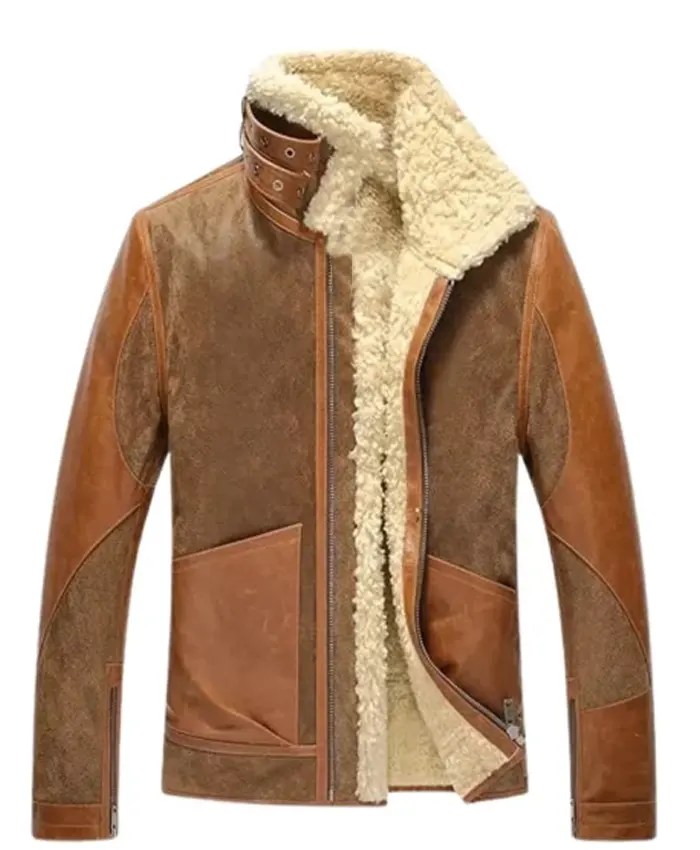 Men’s Warm Pilot Winter Shearling Stylish Leather Jacket
