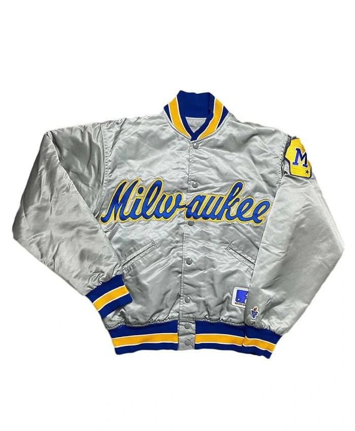 Milwaukee Brewers Grey Satin Varsity Jacket