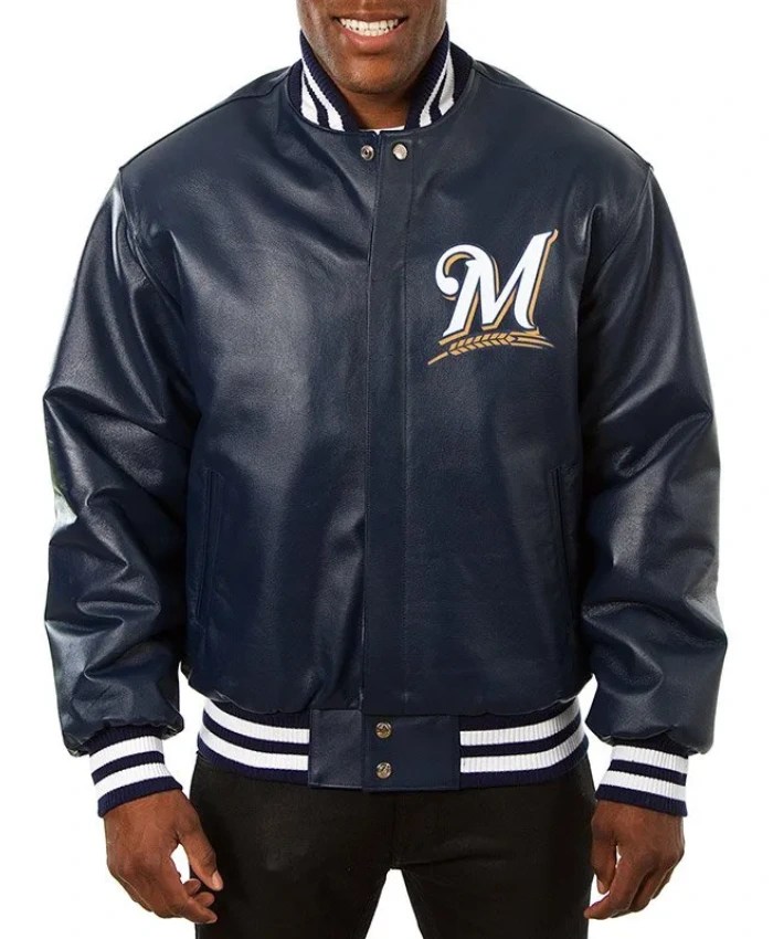 Buy Now Milwaukee Brewers Navy Leather Jacket For Unisex