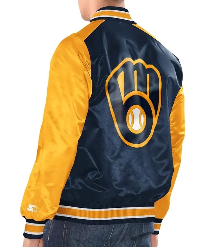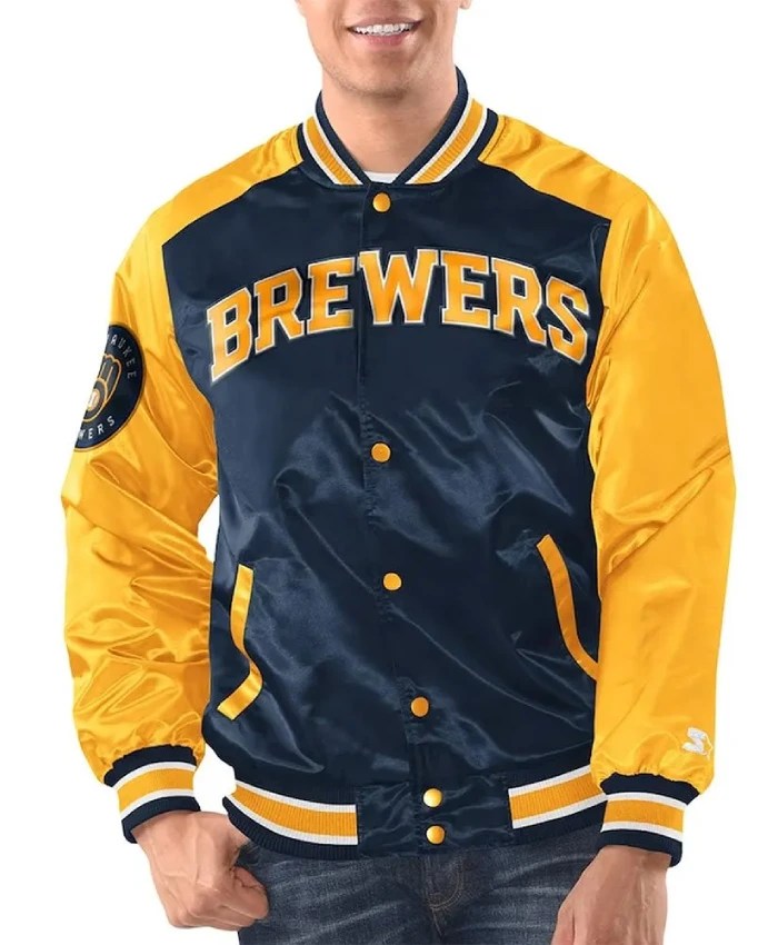 Buy Now Milwaukee Brewers Renegade Navy/Gold Satin Jacket For Unisex