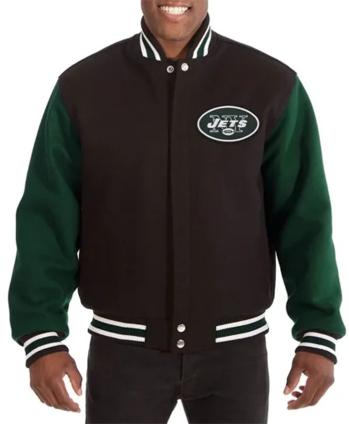 Buy Now New York Jets Green And Black Stylish Varsity Jacket For Unisex.