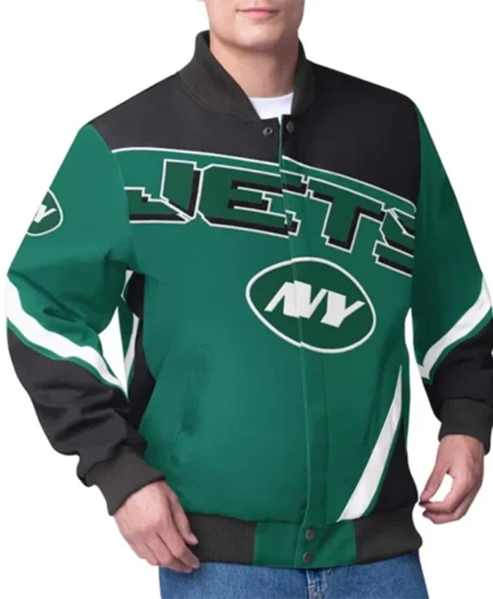 Buy Now New York Jets Maximum Racing Green Varsity Jacket For Unisex
