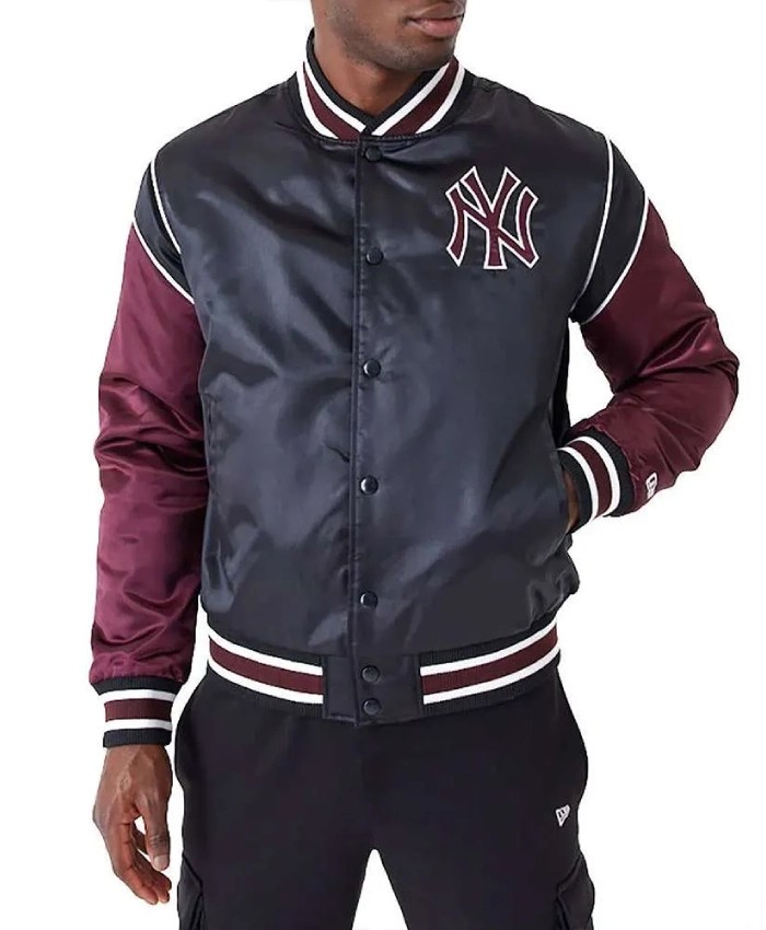 NY Yankees Black and Maroon Satin Varsity Jacket