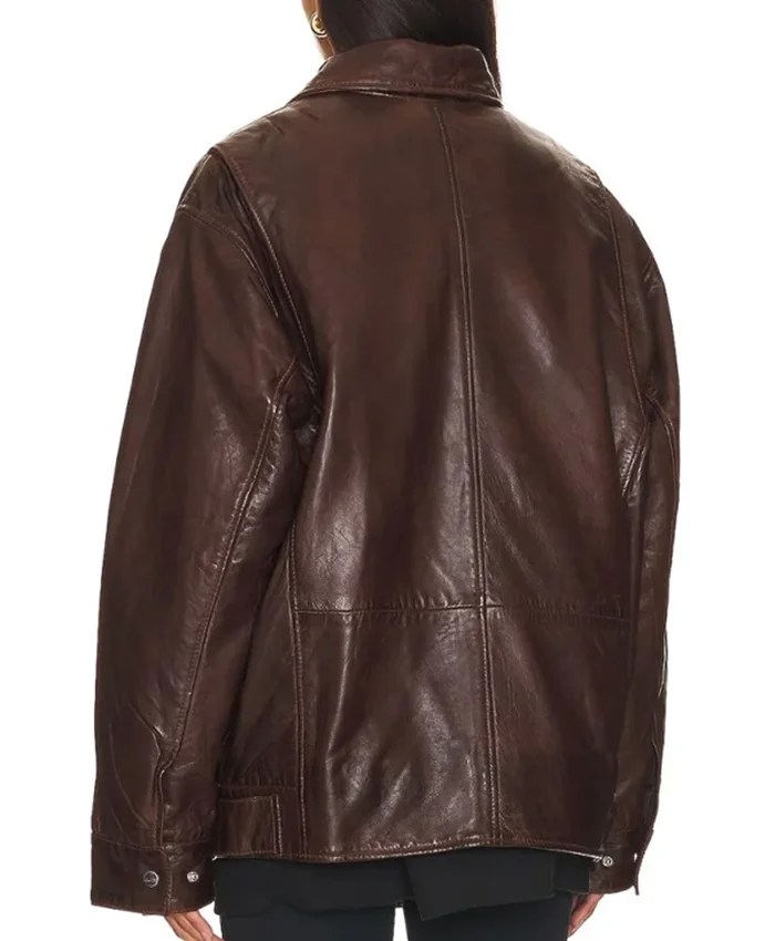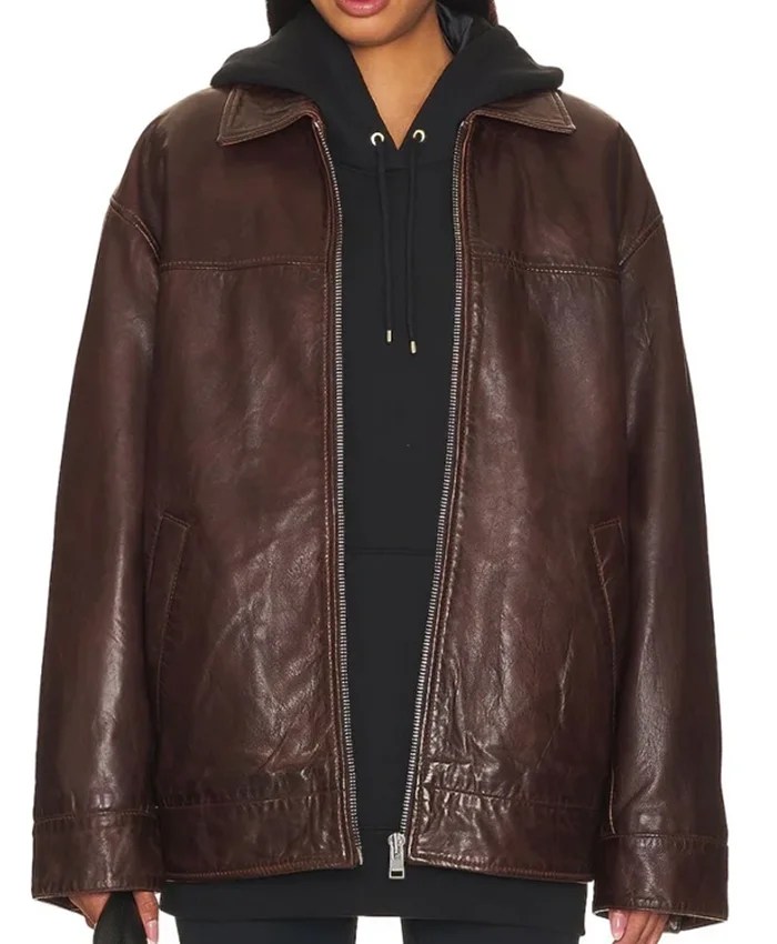 Buy Now Oversized Brown Leather Bomber Jacket For Unisex.