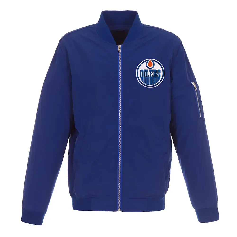 Buy Now Royal Edmonton Oilers Nylon Bomber Jacket For Unisex