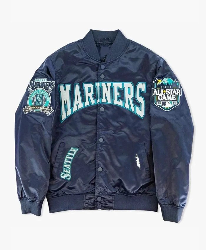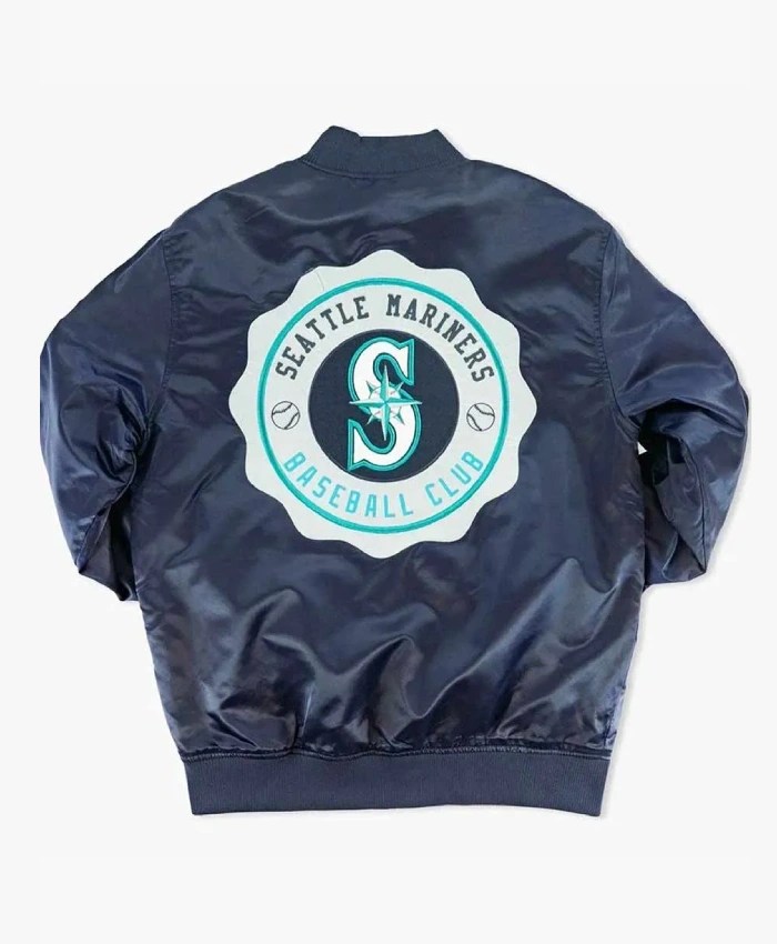 Seattle Mariners Crest Navy Satin Varsity Jacket