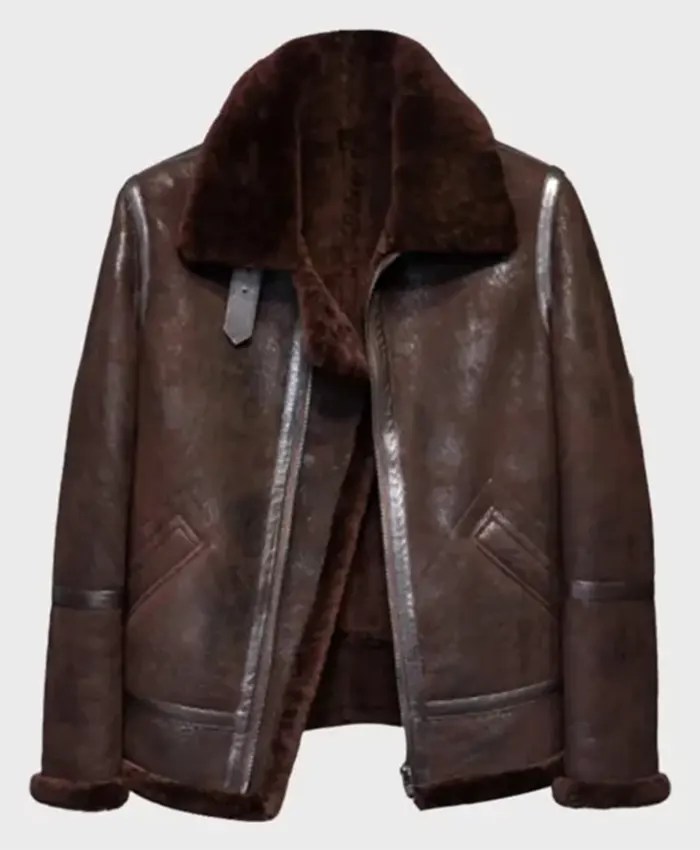 Be the first to review “Shearling Distressed Brown Leather Jacket”