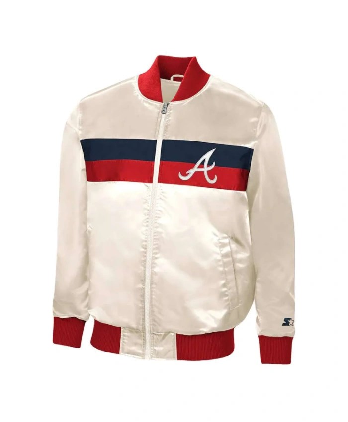 The Ambassador Home Atlanta Braves Cream Satin Bomber Jacket