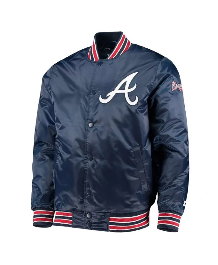 The Diamond Atlanta Braves Navy Satin Varsity Jacket