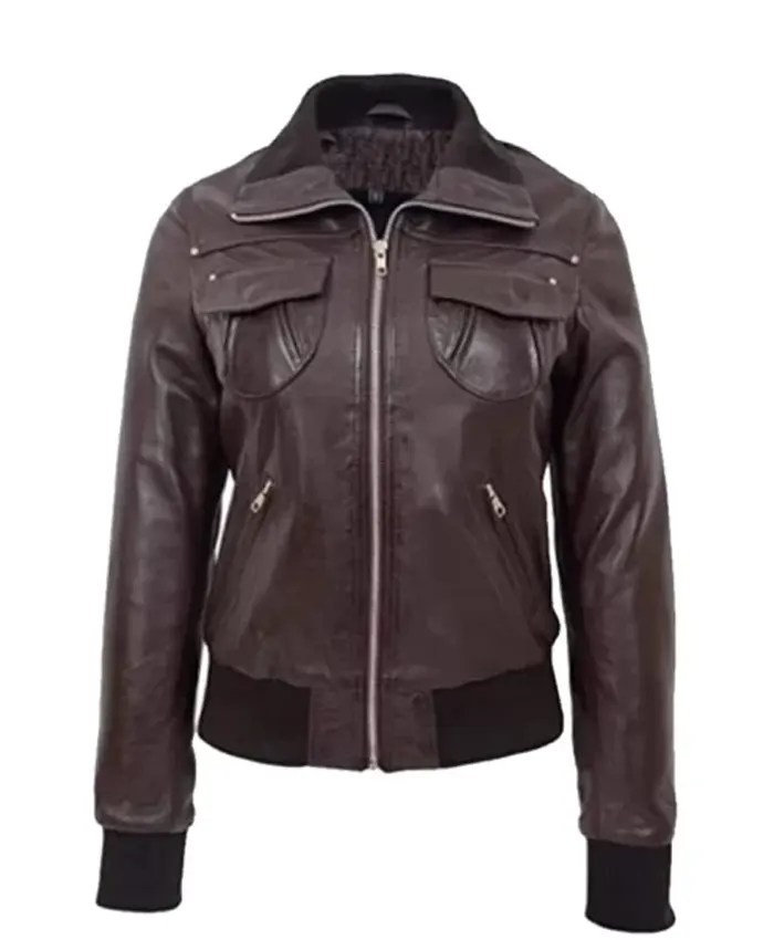 Women’s Bomber Brown Stylish Leather Jacket